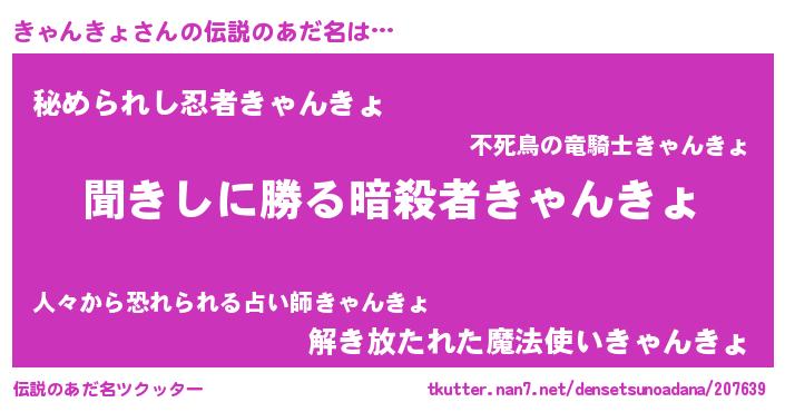 | 胡散臭い通販商品みたいなあだ名 | 『絶対に幸福をもたらす健康食品…その名も「きゃんきょ」』 |