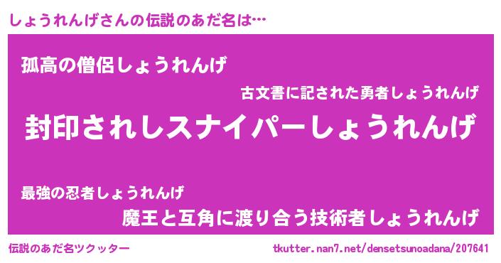 | 意味不明あだ名 | 『自称しょうれんげ』 |