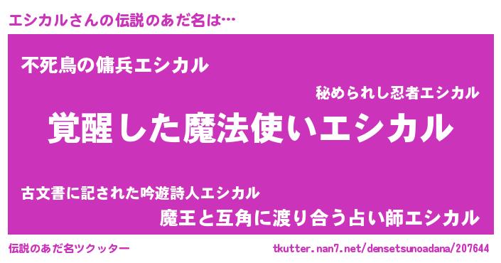 | ヒーロー風カッコイイあだ名 | 『天弓騎士エシ』『スーパーエシカル』 |