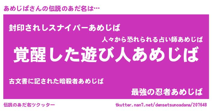 | 意味不明あだ名 | 『とにかく怪しいあめじば』 |