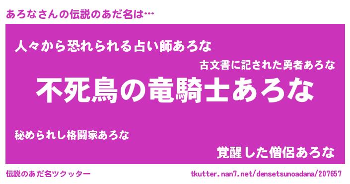 | 男性向けラノベタイトル風あだ名 | 『転生したらあろなだった件』 |