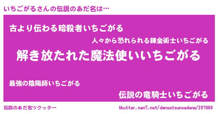 | 意味不明あだ名 | 『とにかく怪しいいちごがる』 |