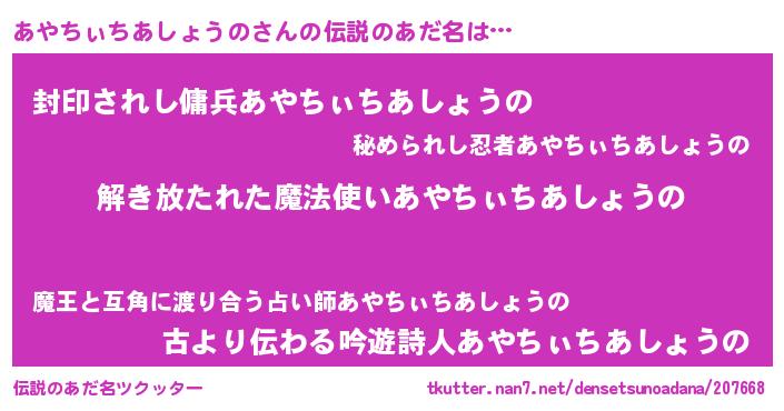 | 胡散臭い通販商品みたいなあだ名 | 『伝統あるサプリメント…その名も「あやちぃちあしょうの」』 |