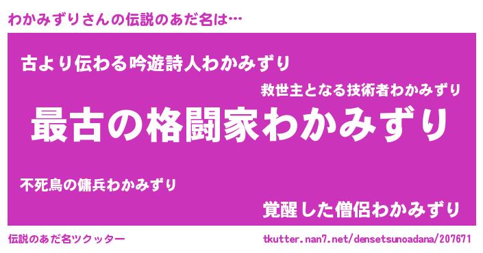 | 意味不明あだ名 | 『住所不定無職わかみずり(13歳)』 |