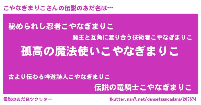 | 意味不明あだ名 | 『とにかく怪しいこやなぎまりこ』 |