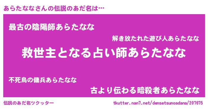 | 男性向けラノベタイトル風あだ名 | 『ノーゲーム・ノーアラタナナ』 |