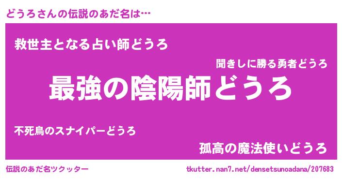 | 胡散臭い通販商品みたいなあだ名 | 『あなたにだけ特別に提供する世界で10本だけ現存している希少なブランデー…その名も「どうろ」』 |