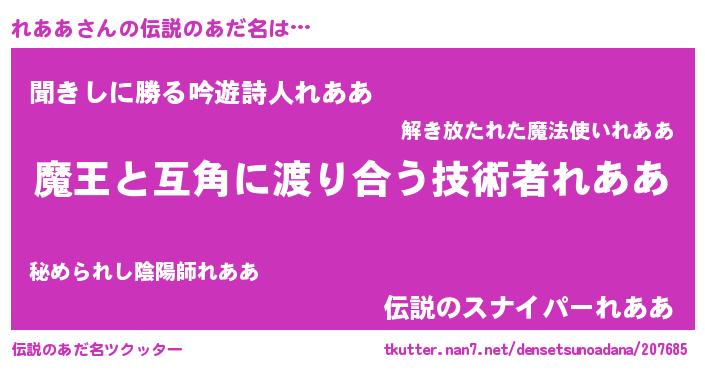 | 女子向けラノベタイトル風あだ名 | 『闇のれああ』『れああ恋絵巻』 |