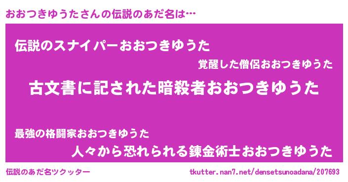 | 意味不明あだ名 | 『住所不定無職おおつきゆうた(41歳)』 |