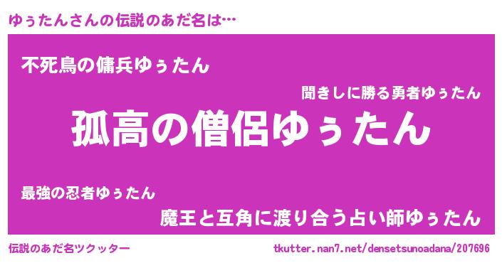 | 意味不明あだ名 | 『住所不定無職ゆぅたん(68歳)』 |