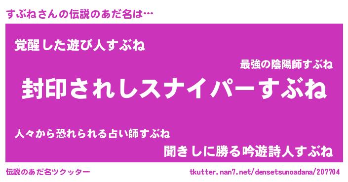 | ヒーロー風カッコイイあだ名 | 『スーパースブネ』『幻影騎士スブ』 |