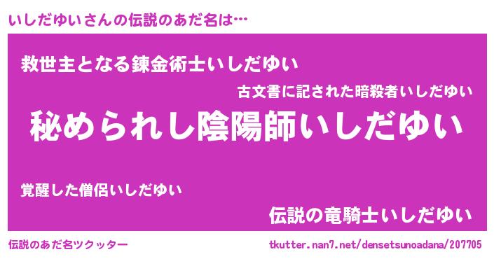 | ファンタジー風あだ名 | 『エターナルイシダユイー』『イシフェル』 |