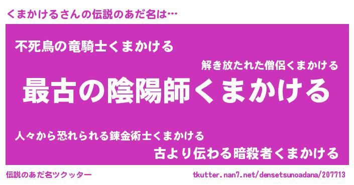 | 意味不明あだ名 | 『くまかけるフォーエバー』 |