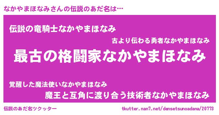 | 意味不明あだ名 | 『なかやまほなみフォーエバー』 |