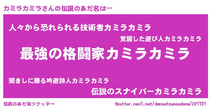 | 意味不明あだ名 | 『住所不定無職カミラカミラ(4歳)』 |