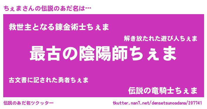 | 肩書あだ名 | 『ちぇま国家主席』『ちぇま教官』 |