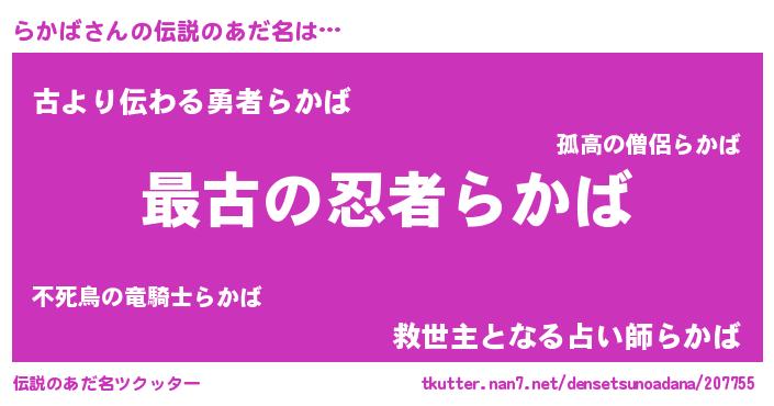 | ヒーロー風カッコイイあだ名 | 『最強戦士ラカバ』『ウルトラらかばマン』 |