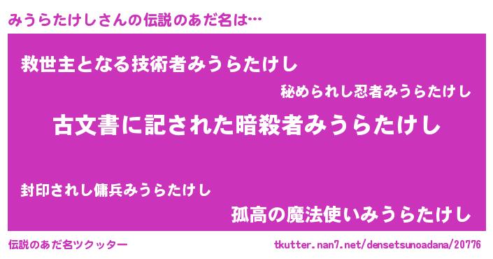 | 意味不明あだ名 | 『永久保存みうらたけし』 |