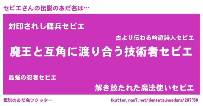 | 女子向けラノベタイトル風あだ名 | 『セビエ恋絵巻』『セビエ姫と円卓の騎士』 |