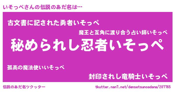 | 意味不明あだ名 | 『いそっぺフォーエバー』 |