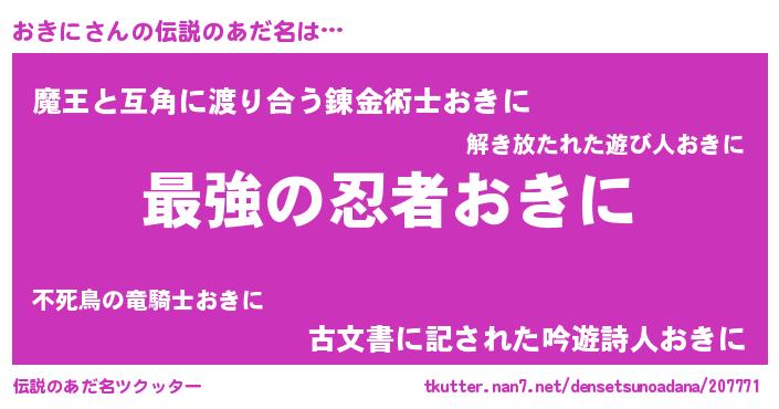 | ヒーロー風カッコイイあだ名 | 『究極戦士オキニ』『ウルトラおきにマン』 |