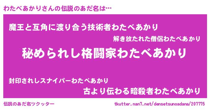 | 意味不明あだ名 | 『自称わたべあかり』 |