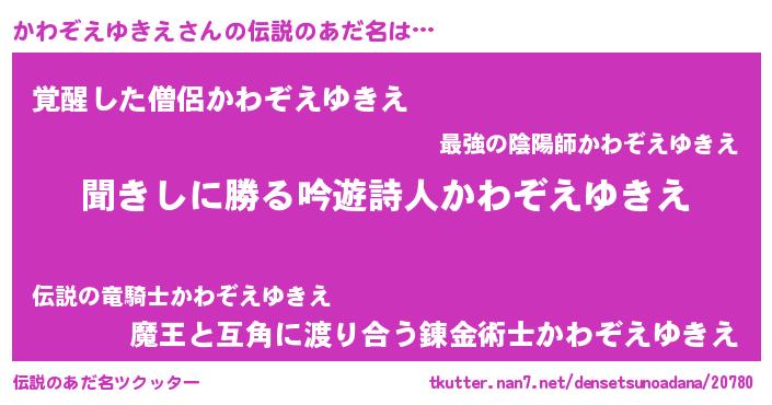 | 意味不明あだ名 | 『永久保存かわぞえゆきえ』 |
