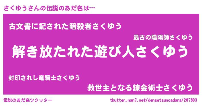 | 意味不明あだ名 | 『とにかく怪しいさくゆう』 |