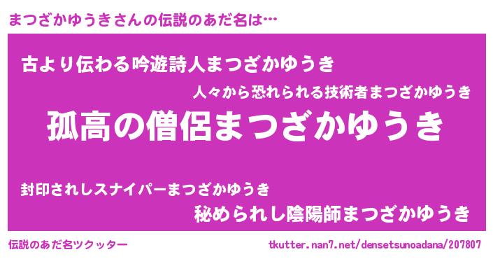 | 意味不明あだ名 | 『とにかく怪しいまつざかゆうき』 |