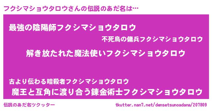 | 意味不明あだ名 | 『とにかく怪しいフクシマショウタロウ』 |