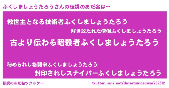 | ヒーロー風カッコイイあだ名 | 『ネオフクシマショウタロウ』 |