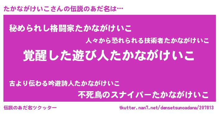| ポケモン風あだ名 | 『ヒタカナガケイコ』『タカナダネ』 |