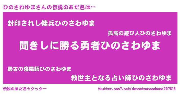 | 意味不明あだ名 | 『永久保存ひのさわゆま』 |