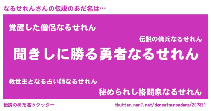 | ヘコむあだ名 | 『なるせれん(震え声)』『なるっ子』 |