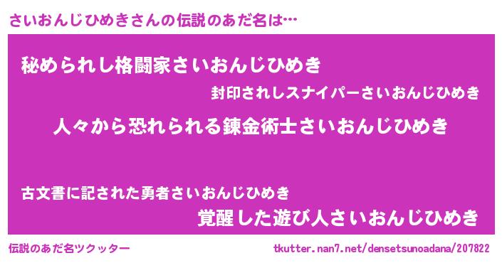 | 意味不明あだ名 | 『眠気覚ましガムさいおんじひめき味』 |