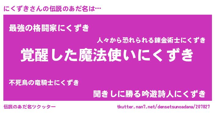 | ヒーロー風カッコイイあだ名 | 『天弓騎士ニク』『究極戦士ニクズキ』 |
