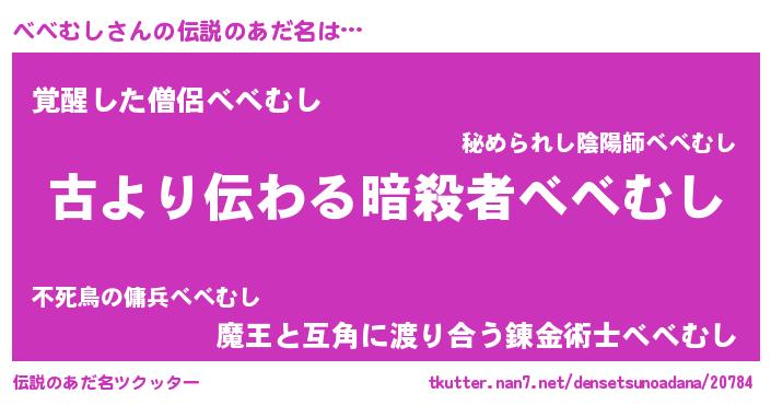 | 意味不明あだ名 | 『住所不定無職べべむし(14歳)』 |