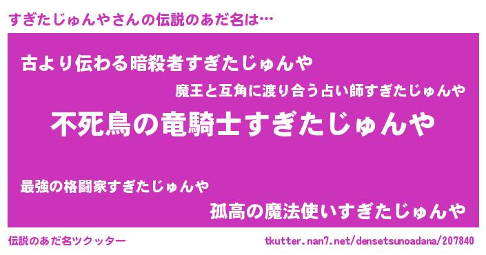| ヒーロー風カッコイイあだ名 | 『スーパースギタジュンヤ』 |