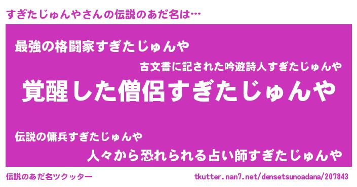 | ヒーロー風カッコイイあだ名 | 『最強戦士スギタジュンヤ』 |