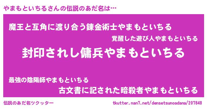 | 男性向けラノベタイトル風あだ名 | 『ヤマモトイチルアートオンライン』 |