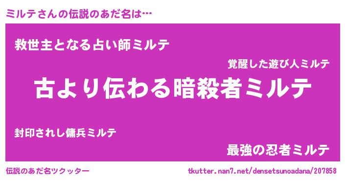 | ヒーロー風カッコイイあだ名 | 『仮面ミルダー』『ネオミルテ』 |