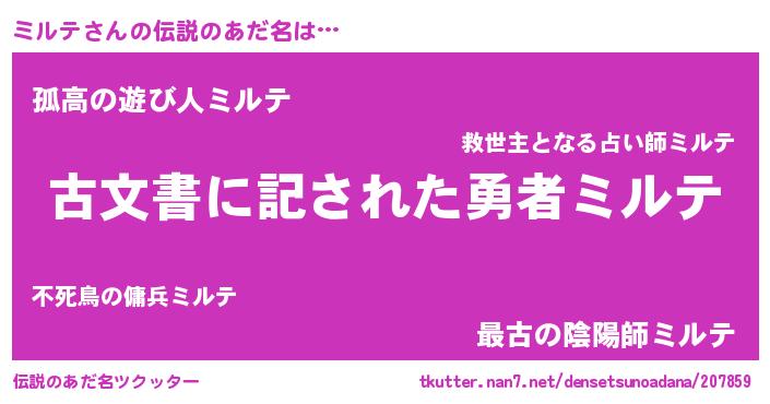 | 意味不明あだ名 | 『永久保存ミルテ』『自称ミルテ』 |