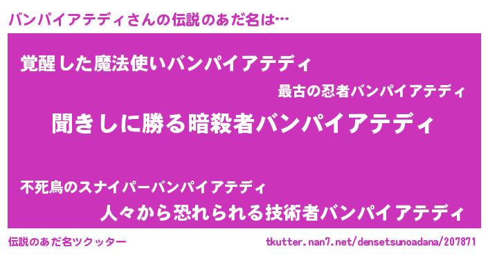 | 意味不明あだ名 | 『自称バンパイアテディ』 |