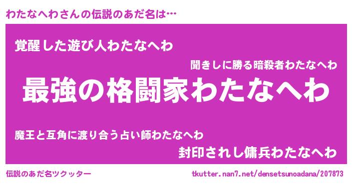 | ヒーロー風カッコイイあだ名 | 『ウルトラわたなへわマン』 |