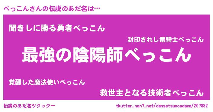 | ヒーロー風カッコイイあだ名 | 『ウルトラべっこんマン』『ネオベッコン』 |