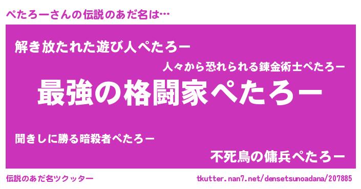 | ヒーロー風カッコイイあだ名 | 『ウルトラぺたろーマン』『幻影騎士ペタ』 |