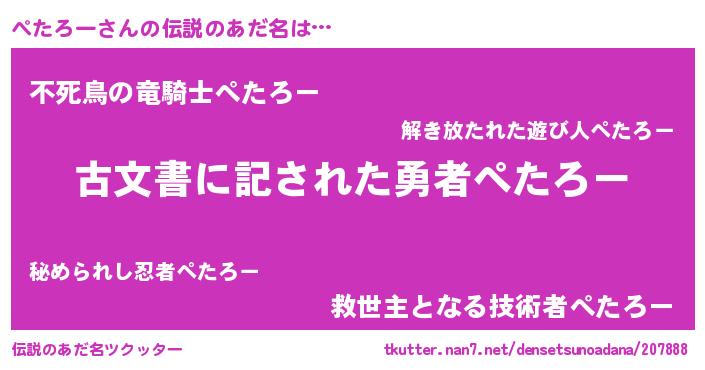 | 男性向けラノベタイトル風あだ名 | 『ぺたろーに滅ぼされるだけの簡単なお仕事です』 |