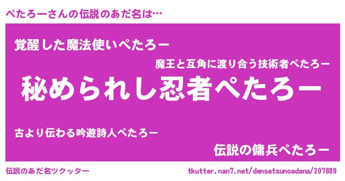 | ヒーロー風カッコイイあだ名 | 『ウルトラぺたろーマン』『魔戒騎士ペタ』 |