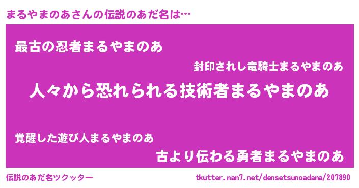 | 意味不明あだ名 | 『住所不定無職まるやまのあ(12歳)』 |
