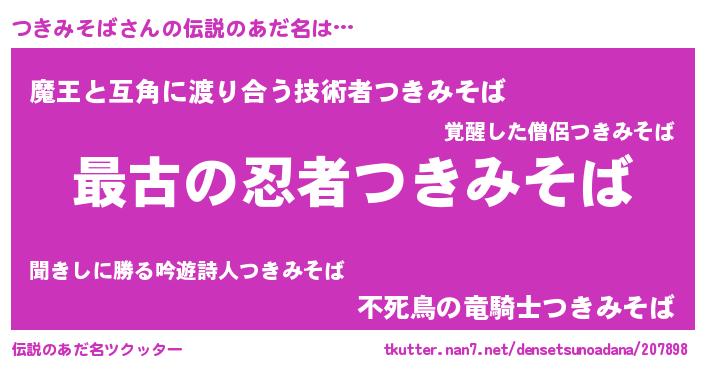 | 男性向けラノベタイトル風あだ名 | 『転生したらつきみそばだった件』 |
